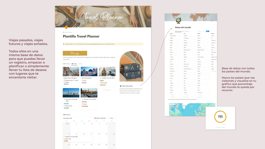 Plantilla de Notion en español que te permitirá organizar todos tus viajes al detalle y desde un mismo lugar.